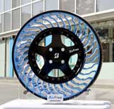 Bridgestone said that the blue spokes of the tyre are designed for high visibility even in low light, which it believes will be a safety improvement over conventional tyres.