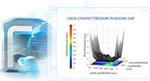 To this end, FIRS³T contains considerable and complex knowledge. Numerical descriptions include realistic surfaces in contact between the sealing ring and shaft, macroscopic aspects such as a contact pressure distribution, the distortion of the seal in dynamic operation, and lubricant simulation with viscosity and flow factors on the surfaces. All influencing variables can be adjusted flexibly in the calculation model, offering a simulated view into the system.