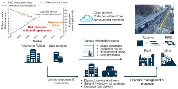 In addition, Yokohama Rubber’s staff of specialists monitoring conveyor belt operations will recommend appropriate proposals for inspection frequency, replacement cycles, and optimal product specifications that meet the individual usage environments and requirements of the system’s users.